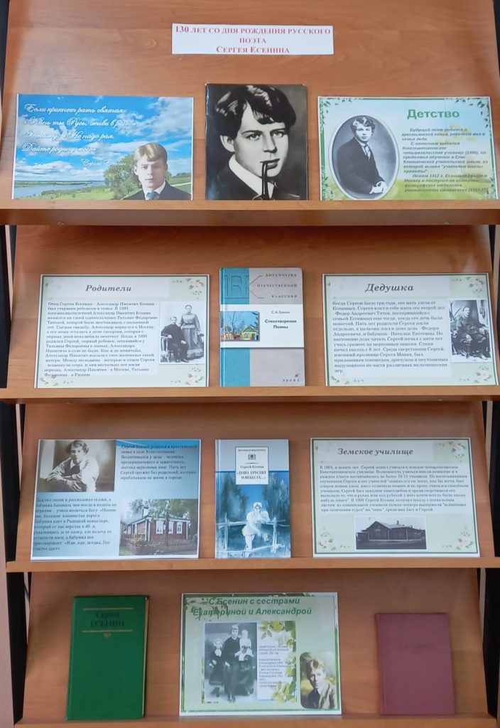 К этой дате в читальном зале Университетского казачьего кадетского корпуса оформлена книжная выставка, которая познакомила с изданиями и литературой о Сергее Есенине, имеющимися в библиотечном фонде.