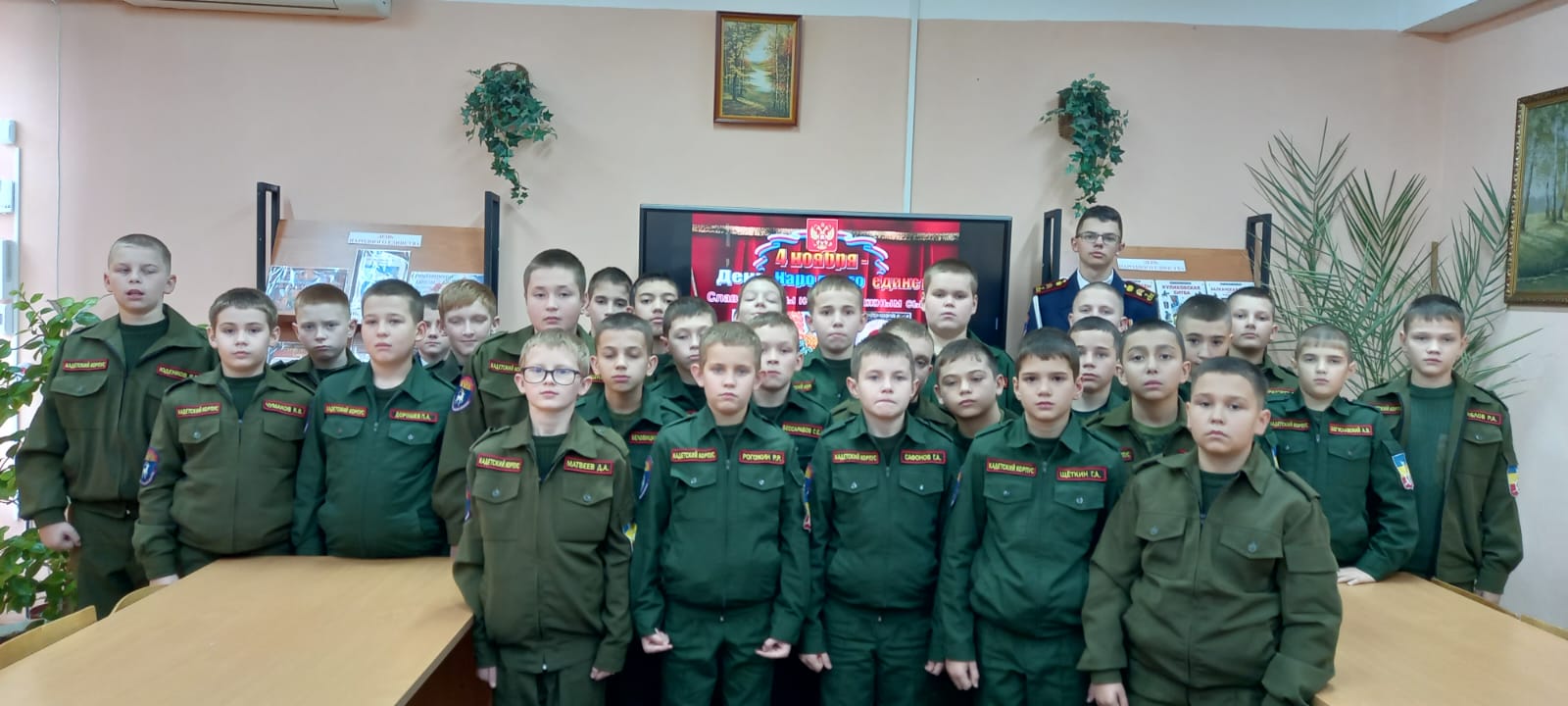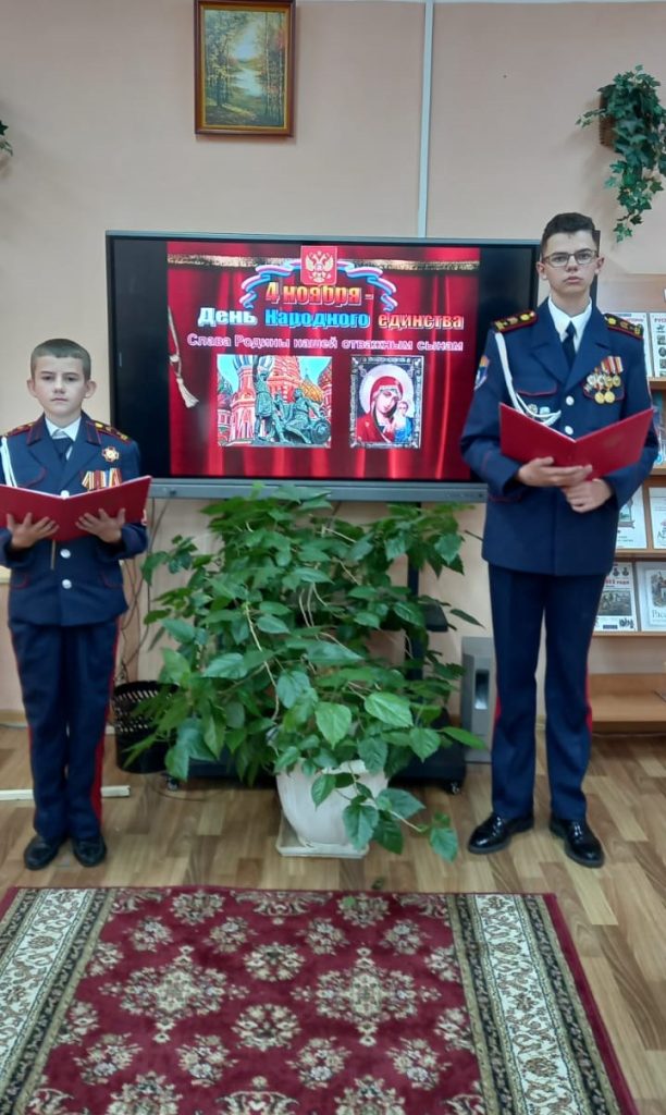 4 ноября вся страна отмечает один из важнейших государственных праздников – День народного единства. Библиотекарь Университетского казачьего кадетского корпуса Кичкинева С.Ц. провела увлекательную и познавательную программу, посвященную этому дню. Она поведала об исторической значимости праздника, о силе единения и многовековых традициях дружбы народов. Кадеты Севостьянов Артем и Лыжник Борис рассказали ребятам, что такое «смутное время», об освобождении Москвы от польских интервентов, о событиях, произошедших в далёком 1612 году, кто такие Кузьма Минин и князь Дмитрий Пожарский, которые собрали народное ополчение, освободили Москву и этим спасли единство русского государства. Участники мероприятия смогли проверить свои знания в викторине «А ты знаешь?». Вопросы касались истории праздника, ключевых событий и личностей, связанных с Днем народного единства.