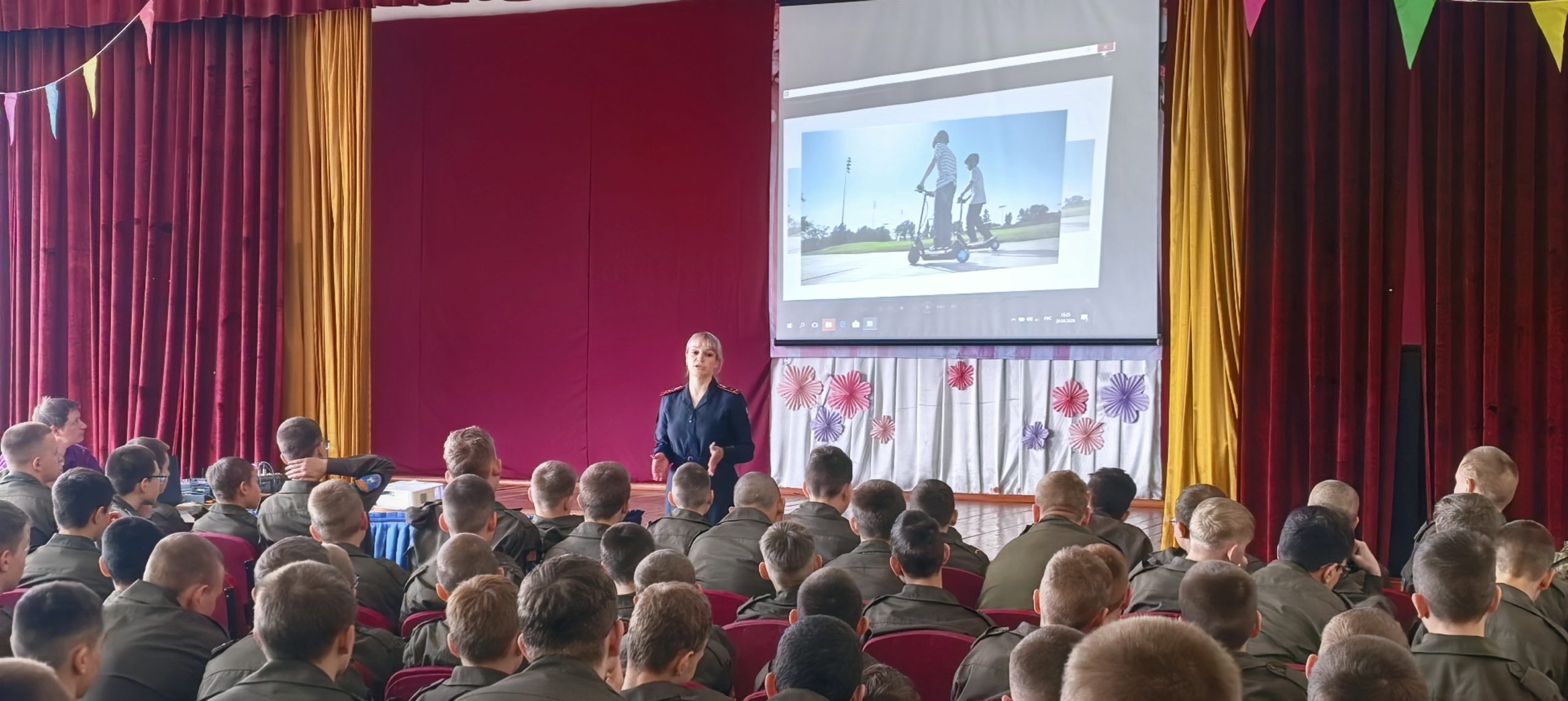 Мероприятие прошло в формате живого общения. Кадеты задали инспектору интересующие их вопросы и разобрали конкретные примеры дорожных ситуаций.